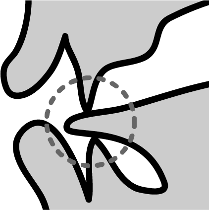 Another special case are dental consonants. There are two main types. In the most common case, the tongue blade is on or near the back of the teeth (as circled in Figure 3.6a). In the other main type, the tongue protrudes between the two sets of teeth, with the tongue blade below the bottom edge of the upper teeth (as circled in Figure 3.6b). The first type of dental consonant is what is often referred to by default as dental (as a shortening for laminodental), while the second type is called interdental. The consonants at the beginning of the English words thin and then are commonly articulated as interdental.